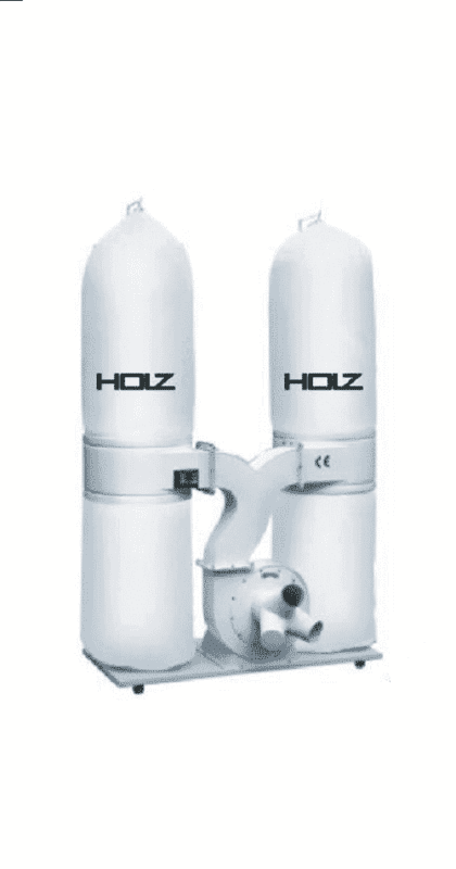 Holz 4 hp dust collector: • 3 kw • 5 ¾” inlet • 1,750 CFM • Magnetic starter • 220v, 3 phase • Aluminum fan • Casters • 2 upper/ lower bags