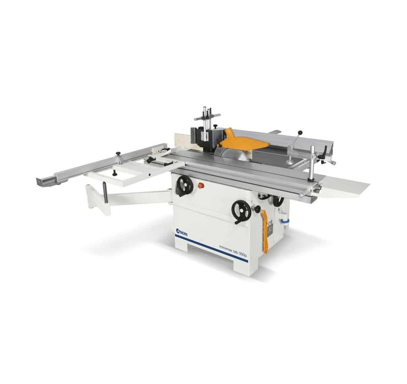 Versatile and compact universal combined machine with the more advanced technological solutions for precision, reliability and safety. Entry-level machine for cabinet work. 3.4hp motors, 2-speed shaper, 3-knife Tersa cutterhead. 12″ sawblade with independently adjustable scoring and 5.5′ sliding table allows user to crosscut 4×8 panels square and efficiently. – Three independent 3.4 Horsepower motors, single-phase 230v – Independently adjusted scoring system – 5.5ft sliding table on precision ball bearings with outrigger and swing-arm – Micro-adjustable shaper fence – Miter fence and eccentric hold-down clamp – Three-knife “Tersa” quick-change cutterhead – Jointer tables open towards the machine, and away from operator – Mobility kit, wheels for machine movement