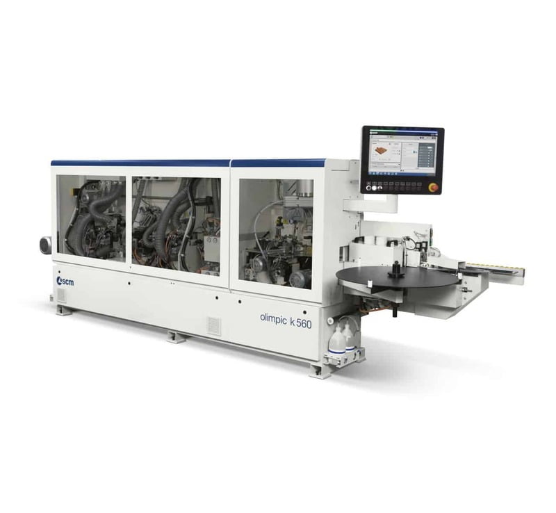High performance and versatility: olimpic k 560 is designed for companies requiring to process many panels per day even though they may be different from one to another. olimpic k 560 has several solutions that guarantee always the best machining on any panel type. Capacities and Speed – Edgebanding thickness: .4mm – 6mm (.016-1/4”) – Guillotine capacity: 3mm – Feed speed: 40/60 ft/min. – Panel height: 3/8” min – 2 1/8” max – Minimum panel length: 5 1/2” – Minimum panel width: 2 3/8” – Minimum distance between panels: 20”