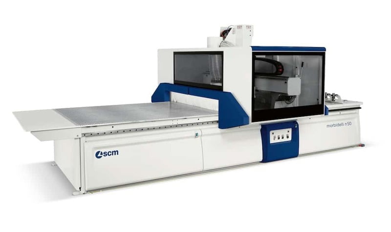 Main Features 4’x8′ CNC Router Reinforced base and innovative one-piece frame High Precision, High Load Prismatic Bearing Guides A.C. Servo Motors X, Y & Z Axes Solid State Inverter Controls Router RPM High Performance Aluminium Multifunction Worktable Hiteco Electrospindle 9.5kW (13HP) Pre-arrangement for “Hiteco” Aggregates F7 Drill Head Drilling Unit Managed by Inverter TR 8 Position Tool Changer Tool Touch Probe Manual Lubrication Pump One (1) 300 Cubic Meter/Hour Vacuum Pump Wired Remote Control Console with Integrated PC “Eye-M “